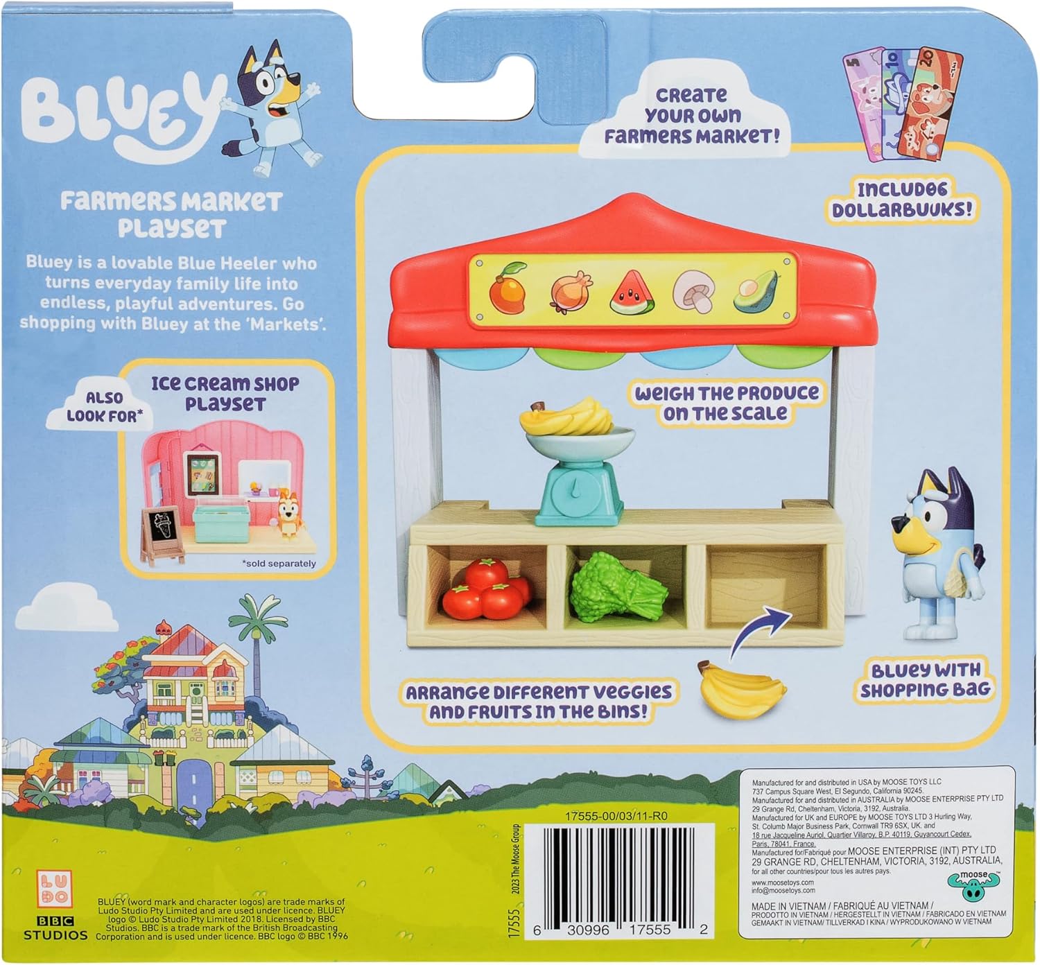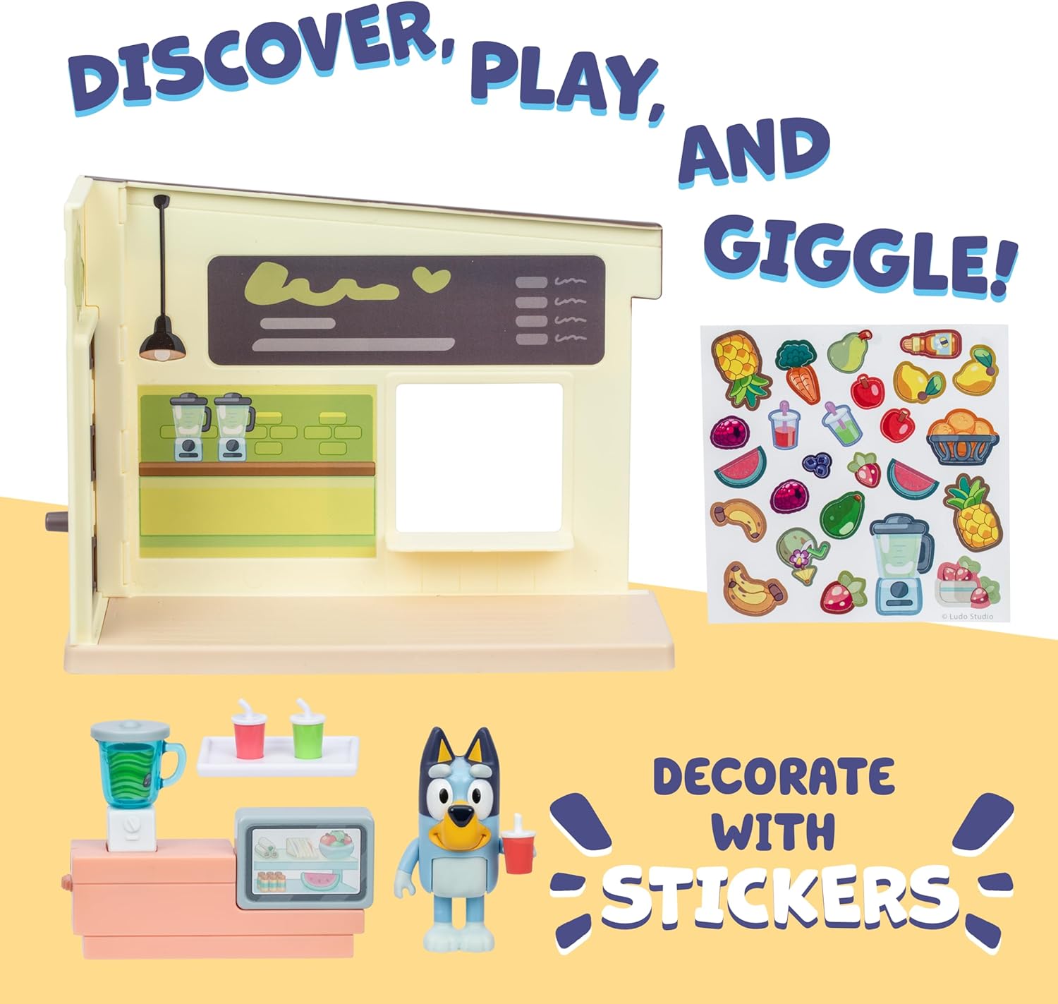 Bluey & Tree Playset, Collector Case and Figures, Farmers Market, Heeler Home, Ice Cream Shop, Juice Bar, Playground