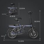 - Compact Foldable Design: Featuring a 14-inch wheel and foldable frame. this electric bike folds down to a compact size of less than 0.135m³. making it incredibly portable and space-saving. Ideal for urban commuters who need to store their bike in tight spaces or transport it easily.