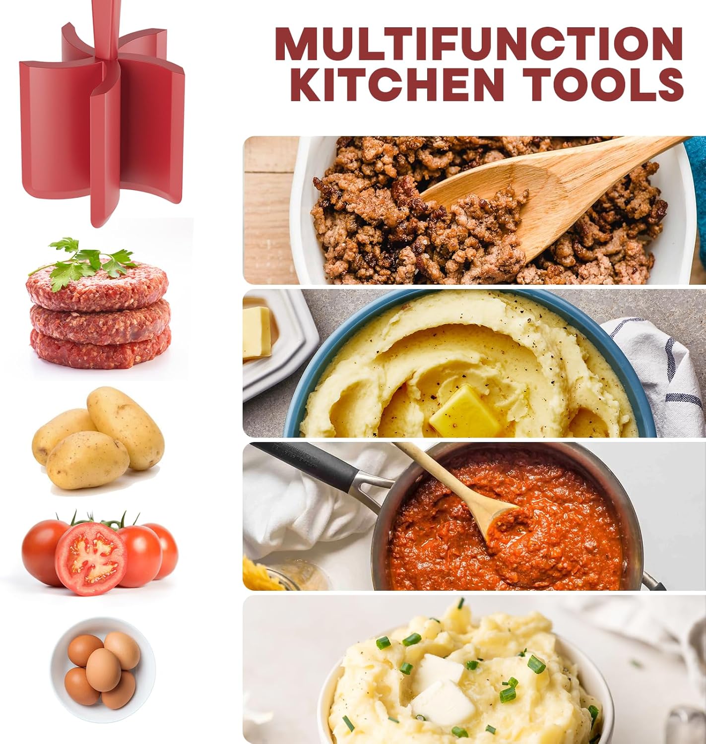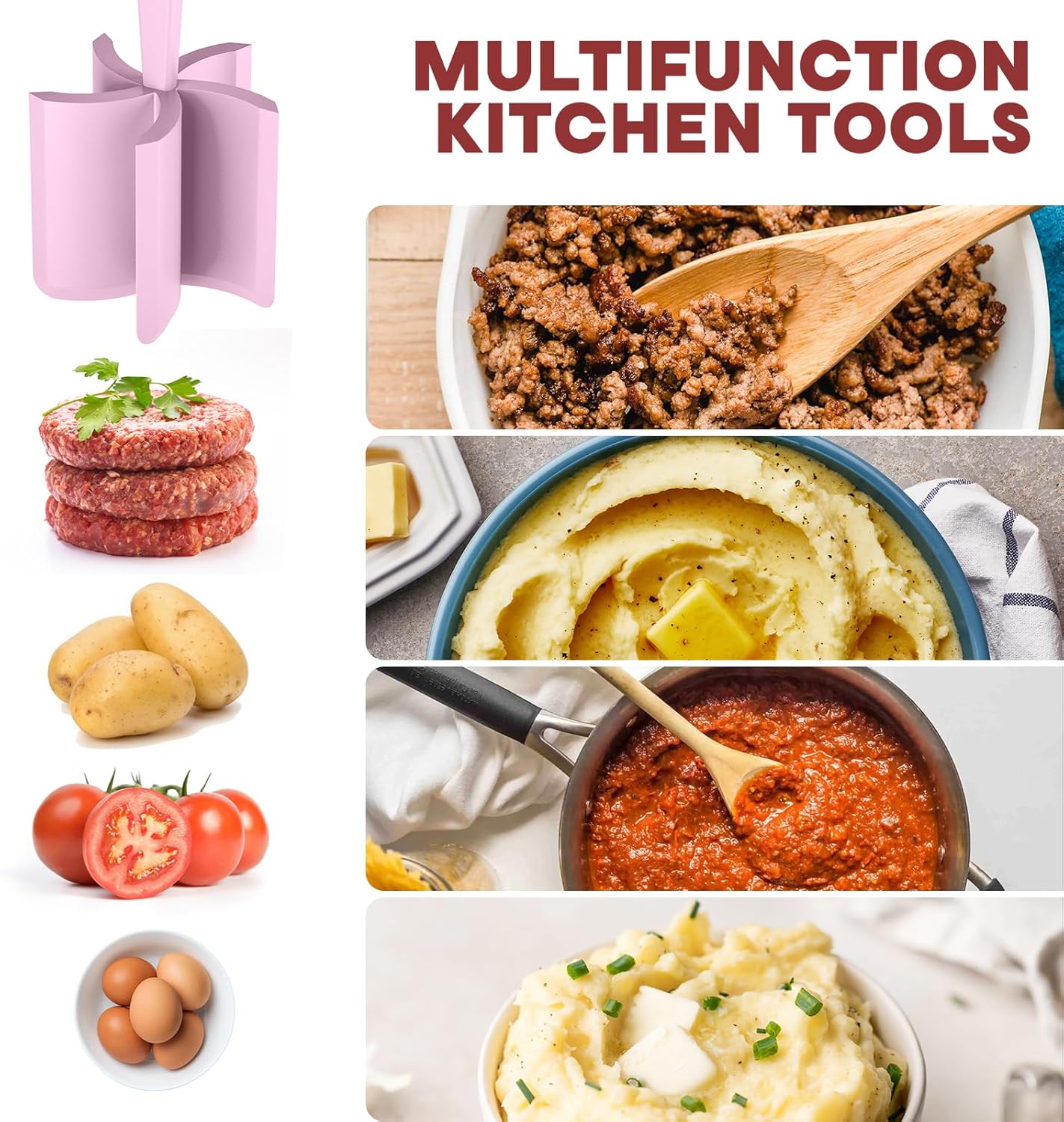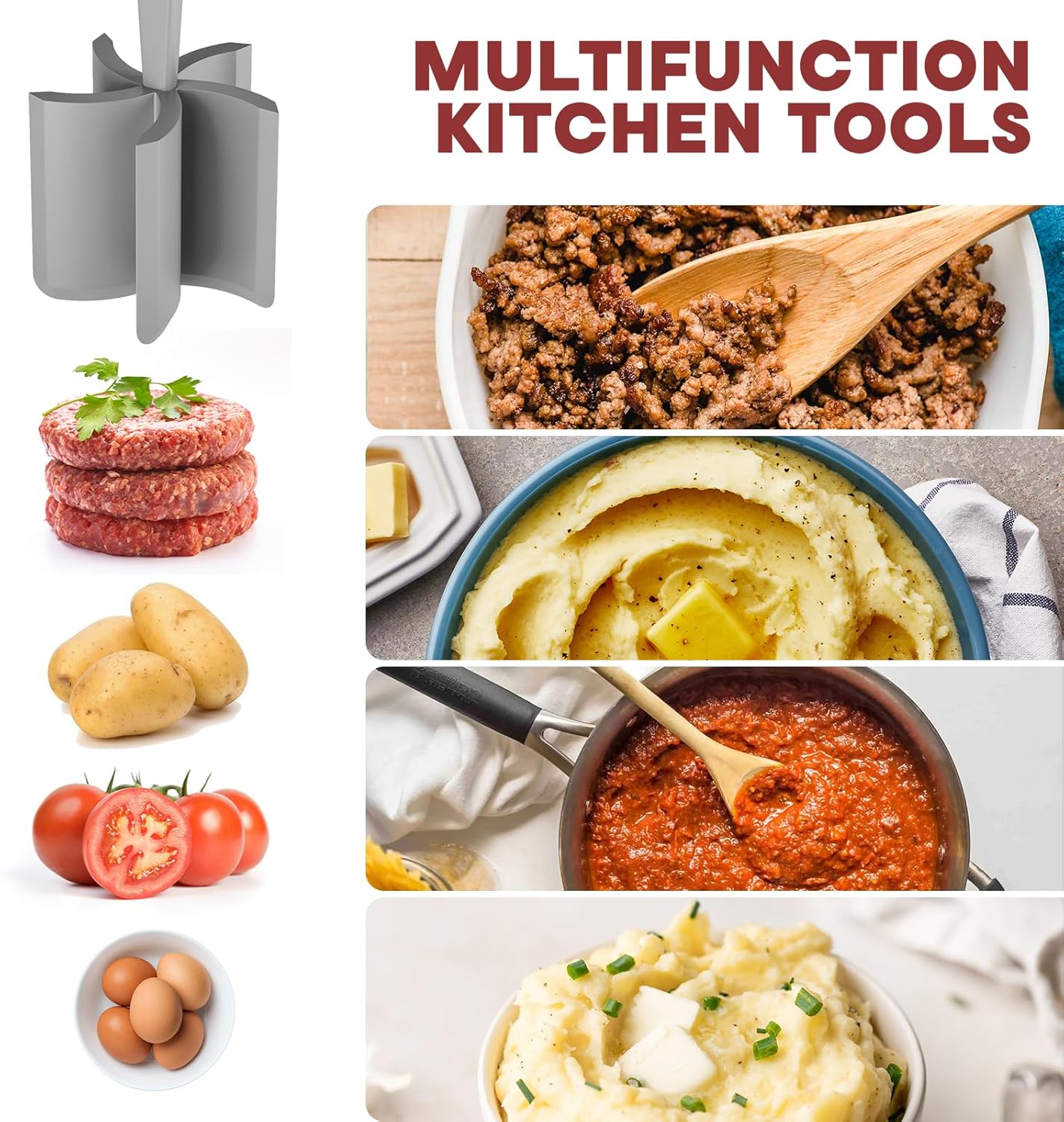 Meat Chopper, Hamburger Grinder, Premium Heat Resistant Smasher for Ground Beef, Burger Grinder Nylon Potato Mix Tool, Meat & Poultry Tenderizers-Black