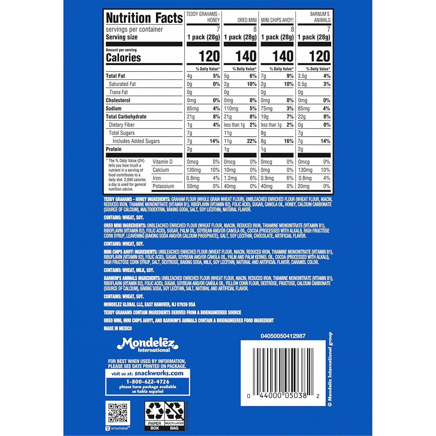 Nabisco Team Favorites Variety Pack, OREO Mini, CHIPS AHOY! Mini, Teddy Grahams Honey & Barnum’s Animal Crackers, 30 Snack Packs