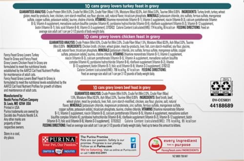 Purina Fancy Feast Gravy Lovers Poultry and Beef Grilled Gourmet Wet Cat Food Variety Pack – (Pack of 24) 3 oz. Cans