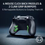 • 4 MOUSE CLICK BACK BUTTONS & 2 CLAW GRIP BUMPERS — Enjoy the same ultra-responsive actuation found in Razer’s top gaming mice with 4 buttons built into the controller’s ergonomic. rubberized handles—topped with 2 claw grip bumpers for even more control