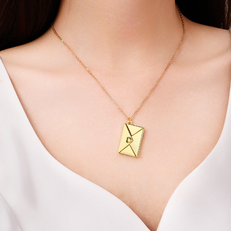 Channeling its namesake. the Love Letter Envelope Necklace is an exquisite way to say ??I love you?? without uttering a single word.