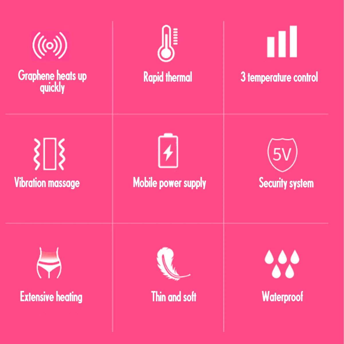 Itscombination of heat and massage therapy helps soothe cramps. relax your muscles and reduce bloating.
